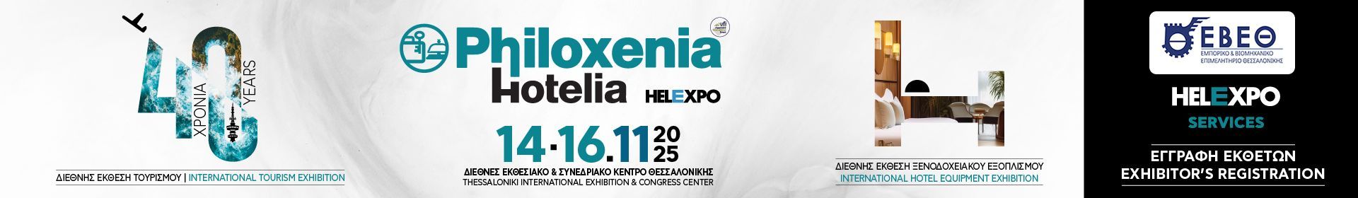 Η 40η Διεθνής Έκθεση Τουρισμού και Ξενοδοχειακού Εξοπλισμού Philoxenia – Hotelia, από την πρώτη της διοργάνωσης μέχρι σήμερα, σκιαγραφεί το προφίλ του τουριστικού επιχειρείν στη χώρα διατηρώντας ένα ισχυρό εκθεσιακό brand name, τόσο στην Ελλάδα όσο και στο εξωτερικό.